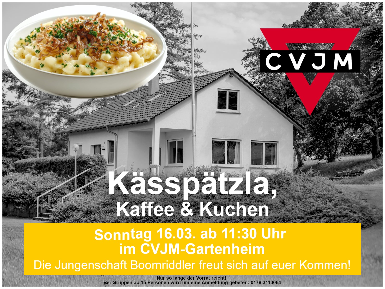 Es gibt ab 11:30 Uhr Kässpätzla und anschließend Kaffee und Kuchen.