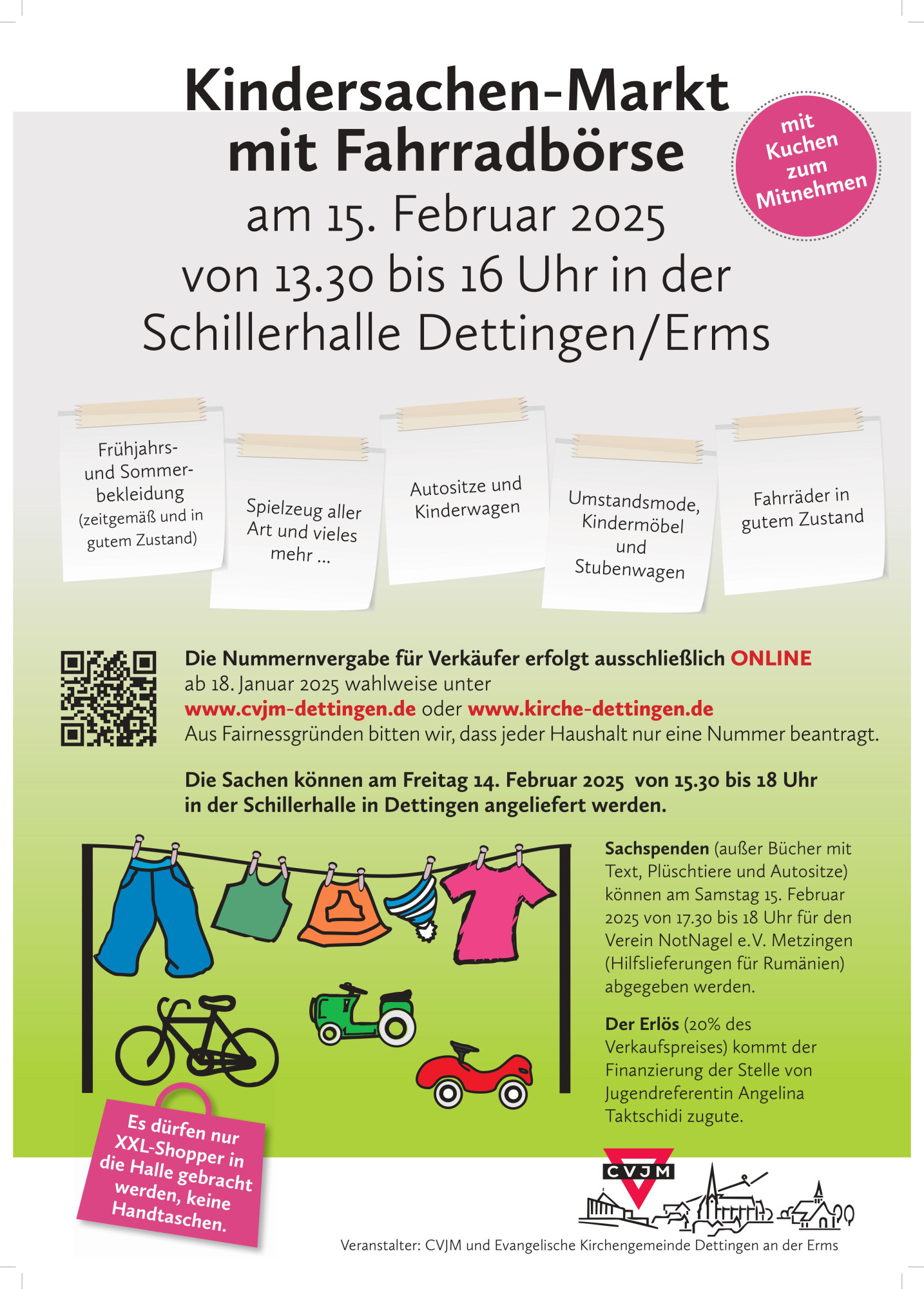 Am Samstag, den 15. Februar 2025 findet von 13.30 Uhr – 16.00 Uhr der Kindersachenmarkt mit Fahrradbörse in der Schillerhalle Dettingen statt.