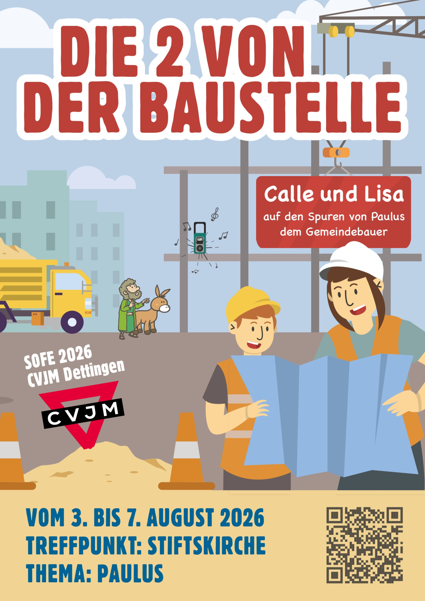 Vom 3. bis 7. August 2026 treffen wir uns in der Stiftskirche, um gemeinsam in die Geschichte von Paulus, dem Gemeindebauer, einzutauchen. Zusammen mit Chaos Calle & Lisa Leitung begeben wir uns auf eine spannende Reise „auf der Baustelle“ und entdecken, wie Gemeinschaft wachsen kann.